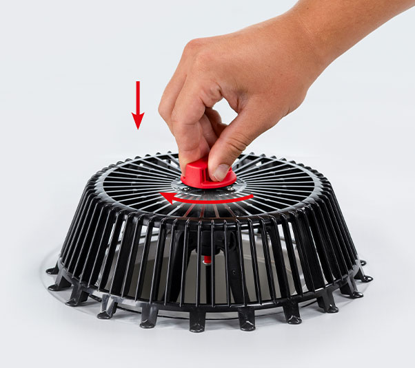 Der schnellste Kieskorb der Welt! Stufenlos einstellbar und aus hochwertigen Materialien gefertigt. Das patentierte Verschlusssystem ermöglicht die Montage des Kieskorbs im Handumdrehen. Der rote Drehknopf sorgt zudem für eine bessere Erkennbarkeit von Abläufen und Speiern bei Wartungsarbeiten.