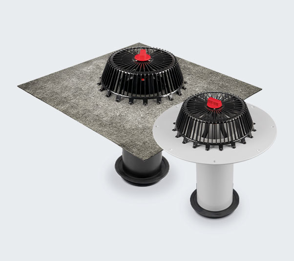 Jetzt erhältlich: Für vertikale Entwässerung durch das Dachpaket, mit strömungsoptimiertem Kieskorb, LGA-zertifiziert